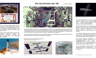 Die Idee für diese Ausstellung entstand als Ersatz für die Technikwoche, welche im April mit allen 4. Klassen hätte stattfinden sollen und wegen Corona abgesagt werden musste. Mit grossem Elan machte sich die Klasse 4a im März daran, Poster zu verschiedenen Themen rund um die ISS zusammenzustellen. Diese befassten sich mit Fragen zur «Geschichte der ISS», «Was ist die ISS heute?», «Wie sieht ihre Zukunft aus?», «Wie lebt es sich auf der ISS?», aber auch mit naturwissenschaftlichen Fragen wie «Erforschung von schwarzen Löchern und Neutronensternen» oder «Schwereloses Feuer und kühle Flammen».