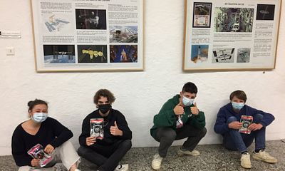 «Ist das nicht völlig abgespaced? Während wir hier zur Schule gehen und sich die Welt mit Corona abmüht, umkreisen sechs Astronauten alle 90 Minuten unseren Planeten! Und bereits seit dem Jahr 2000 ist die Internationale Space Station ISS dauerhaft von Raumfahrern bewohnt! In dieser Ausstellung erhältst Du Einblick in das wohl bisher verrückteste und anspruchsvollste technische Projekt der Menschheit! Wir wünschen Dir viel Vergnügen!»