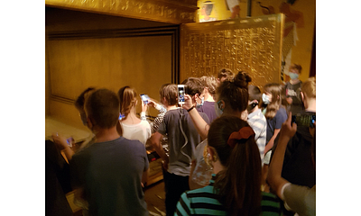 Als wir dort ankamen, hatten wir gleich ein Gefühl, in die Welt der alten Ägypter einzutauchen. Im Eingangsbereich waren verschiedene Informationstafeln, unter anderem auch eine zum Rosettastein, einer Steintafel, auf der ägyptische Hieroglyphenschrift in zwei andere Sprachen (Demotisch und Altgriechisch) übersetzt wurde. Danach sahen wir uns einen kurzen Film über die archäologischen Ausgrabungen im Tal der Könige an und liefen durch die verschiedenen Grabkammern des Grabs von Tutanchamun.